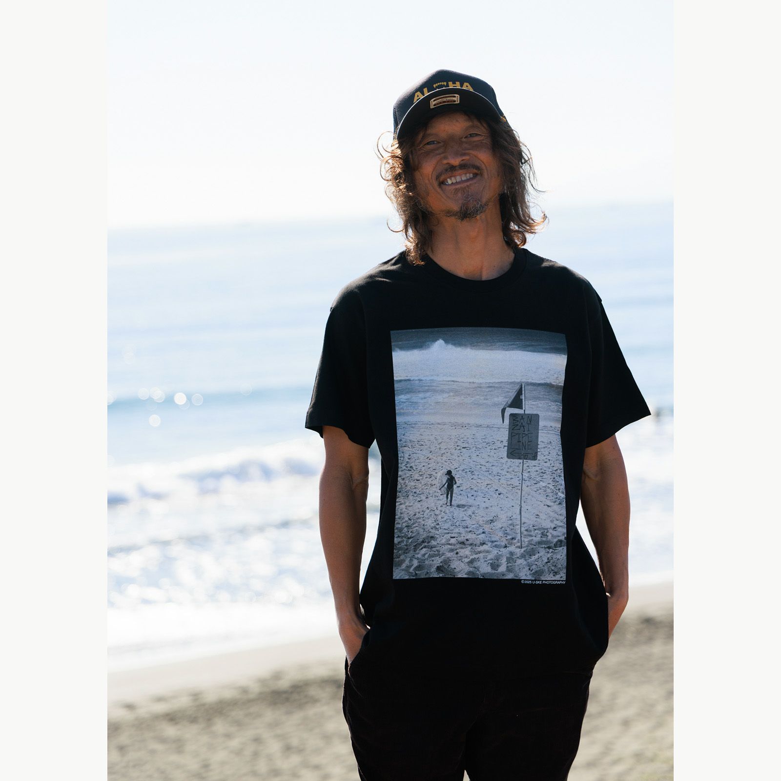 photographer x DONT PANIC! サーフィンフォトグラファーのU-SKE氏とのコラボTシャツが発売! U-SKE氏の独自の視点を反映した2つのデザインのTシャツが、コレクションに加わります。 波の美しさと自然の力を感じる特別なデザイン。
