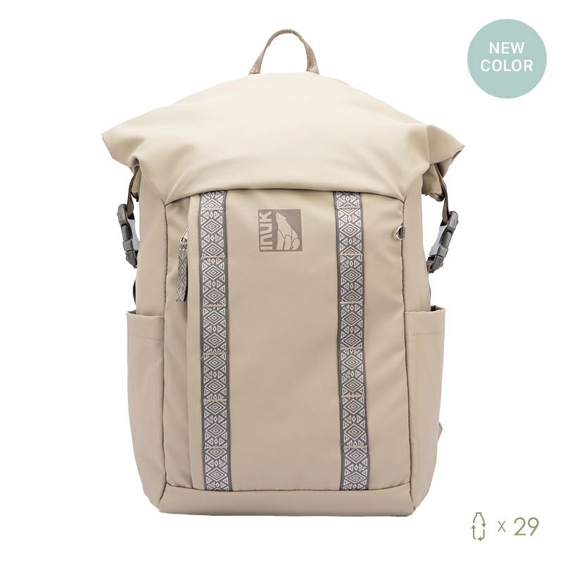 シンプルで機能的なロールトップバックパックが登場 ≪ペットボトル×29本分使用≫ 広い開口部のメイン収納と、オーガナイザー付きのPCポケットを備えたこのバックパックは、使い勝手抜群です。