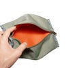 ポーチ使用されているリサイクルポリエステル生地は撥水加工が施されおり、丈夫で軽量。旅行や出張はもちろん、部活やジムに行く時などに便利です。